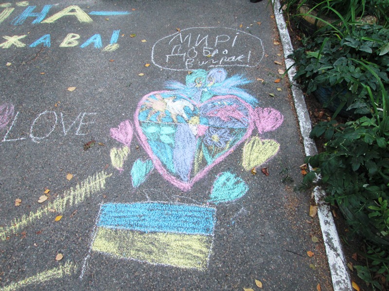 19.09.2018 р. до Міжнародного дня миру на подвір'ї бібліотеки відбувся арт-стріт (малюнок на асфальті)